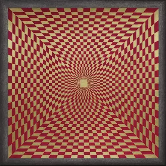 Der Blick verweilt und der Betrachter taucht durch die Fokussierung förmlich in das Gemälde ein. Dabei wird eine ganz eigene Dynamik in Gang gesetzt: das „Muster“ gerät optisch in Bewegung und erzeugt immer wieder neue Formen und Gebilde. So wird dem eigentlichen Zustand die Aufmerksamkeit entzogen und der Fokus der Wahrnehmung umgeleitet.