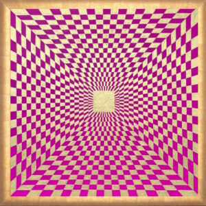 Der Blick verweilt und der Betrachter taucht durch die Fokussierung förmlich in das Gemälde ein. Dabei wird eine ganz eigene Dynamik in Gang gesetzt: das „Muster“ gerät optisch in Bewegung und erzeugt immer wieder neue Formen und Gebilde. So wird dem eigentlichen Zustand die Aufmerksamkeit entzogen und der Fokus der Wahrnehmung umgeleitet.